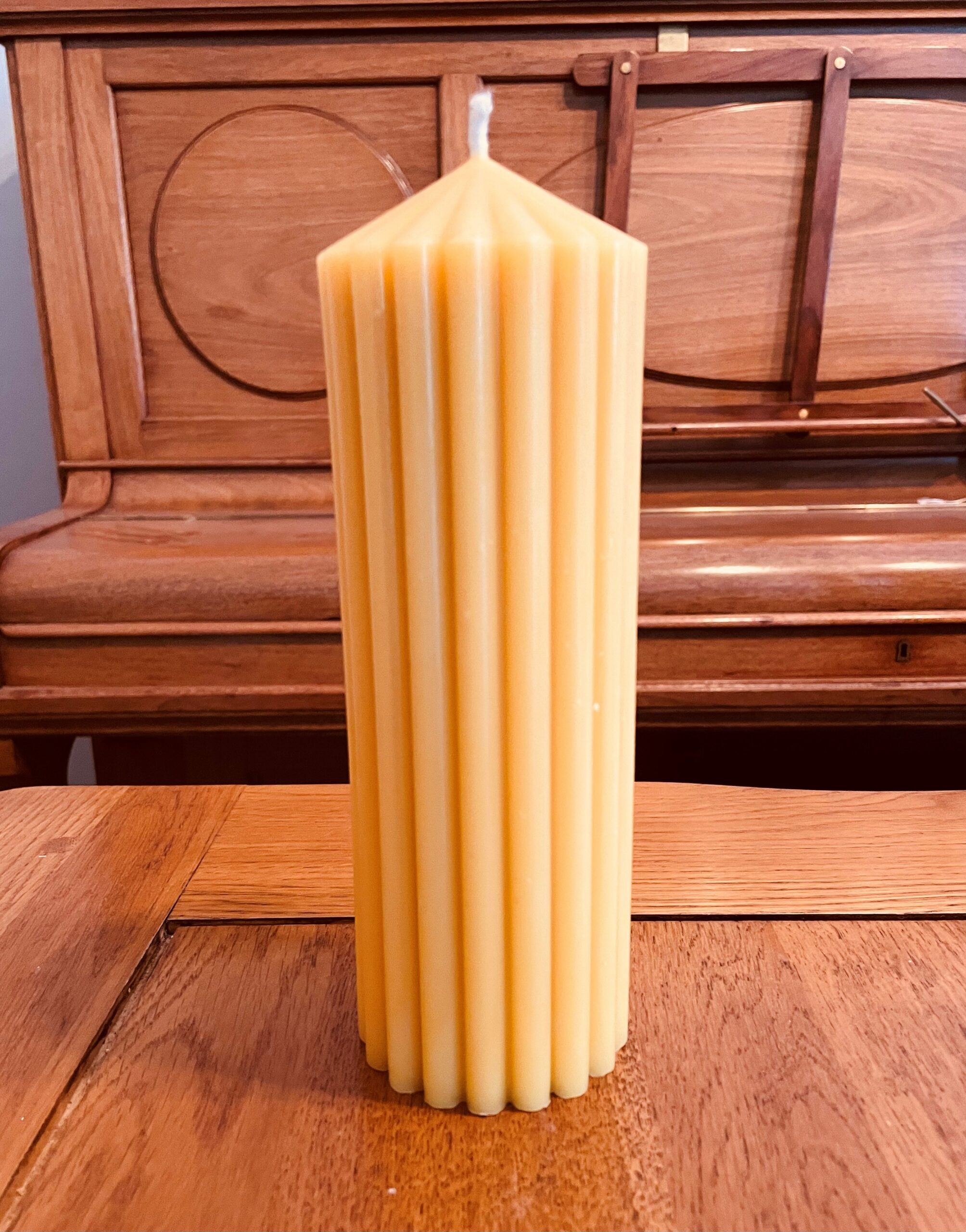 Ribbed beeswax pillar candle