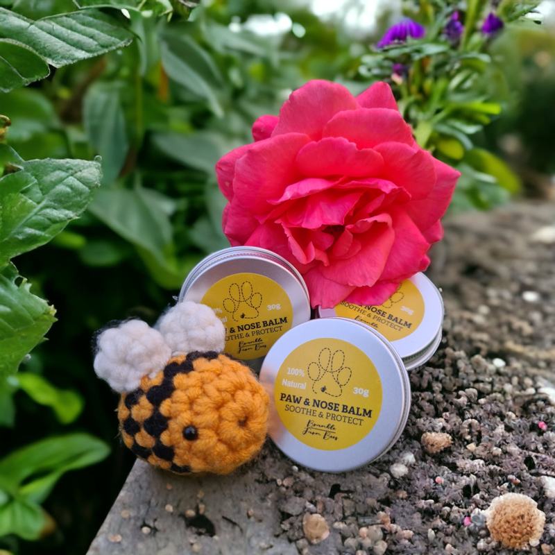 Soothing natural balm for dry, cracked paw pads and noses. Made with beeswax, propolis, and natural oils. Unscented, natural moisturising ingredients, Safe for dogs to lick.